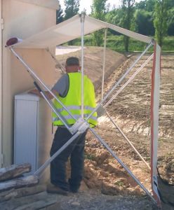 Abri Express vous permet de travailler en situation extérieure malgré des conditions climatiques difficiles, été comme hiver.