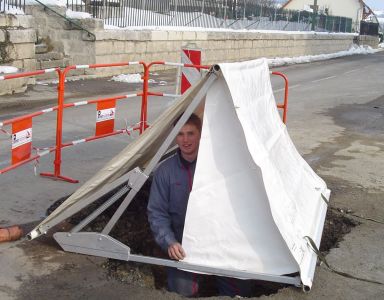 La tente Eau/Gaz/Elec mise en place en 20 secondes et qui garantit une étanchéit totale pour vos travaux.